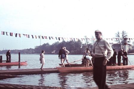 Die grossen Laternen am Ende der Stege dienten wohl häufiger als Orientierungshilfe bei der Rückkehr am späten Abend... . Gern tranken die Elektraruderer in den Lokalen am Müggelsee Cognac und Selter - kein Bier! |