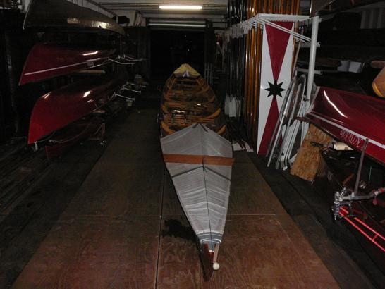 Auch unsere Yole schläft im Bauch des KCfW Bootshauses... |